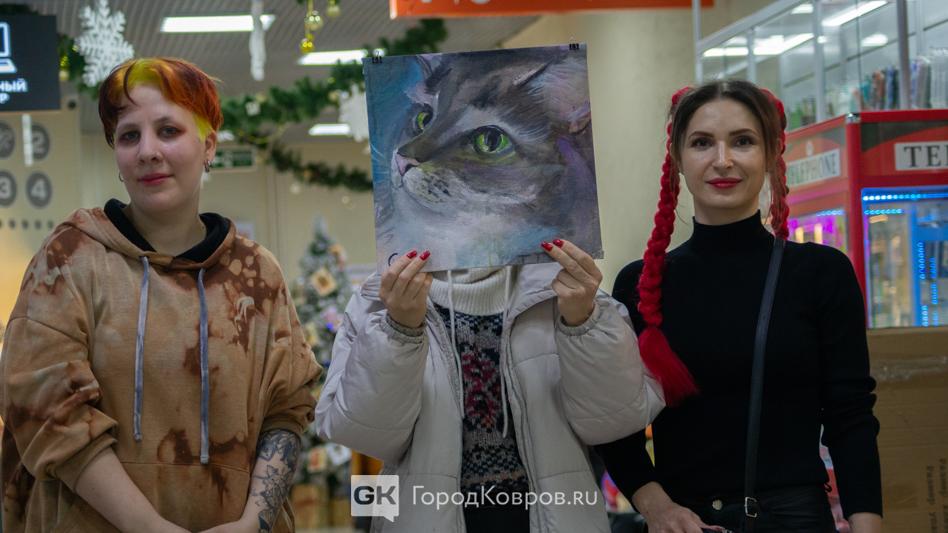 Можно было приобрести и картины. Автор — всё та же Татьяна Трухина. И это не выдуманные милые кошечки, а реальные портреты, написанные с натуры. На паре картин те самые котики, что находились в вольерах.