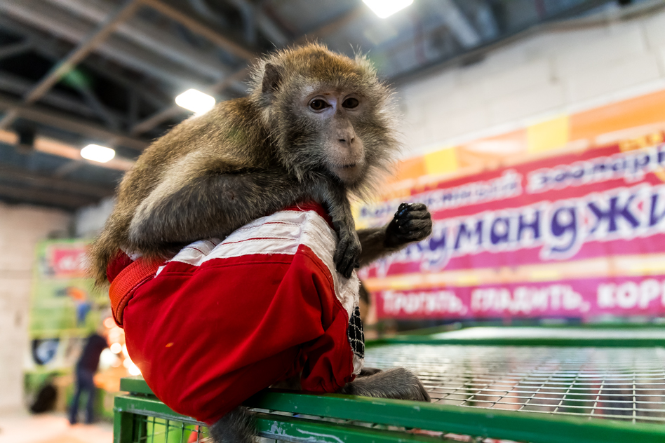 Животных из семейства мартышковых на выставке две. Одна из них — Люся, так написано у неё в паспорте в графе «Имя». Ей четыре месяца. Яванские макаки, по сути, ручные. Любят играть, купаться, веселиться, шопиться и обретать новых друзей. Правда, ещё кое-что…