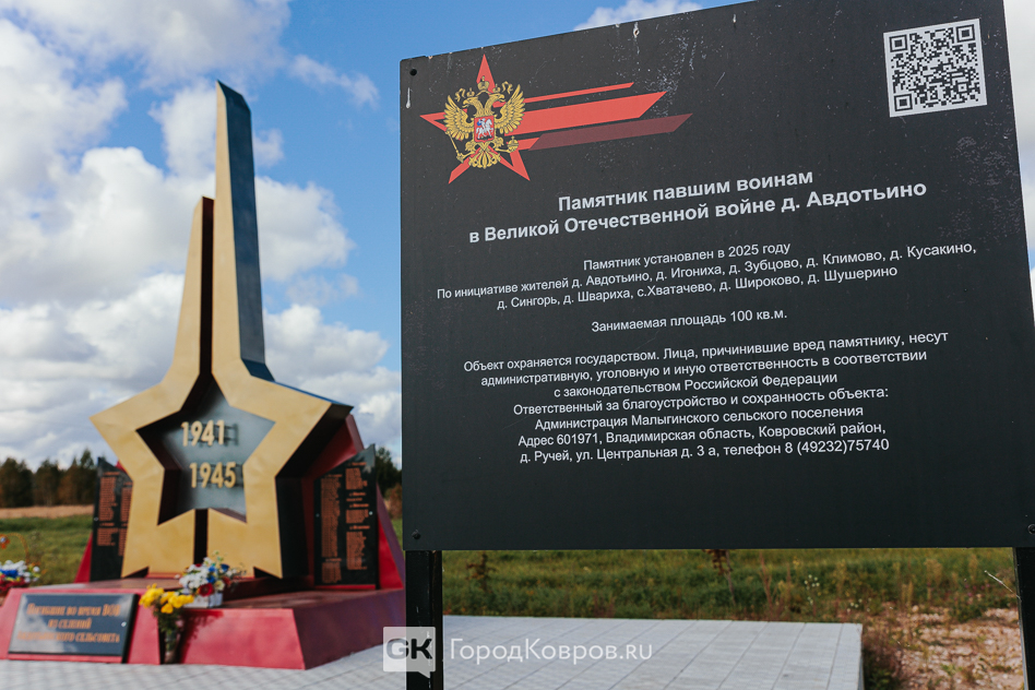 - «Здесь по инициативе жителей в честь юбилея Победы открыт памятник погибшим в годы Великой Отечественной войны. Жители сами подняли имена фронтовиков из архивов, залили фундамент под памятник. Настоящий пример того, как любовь к своей малой родине рождает великие дела».
