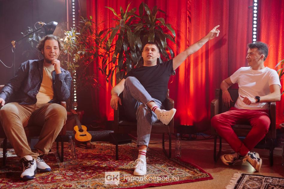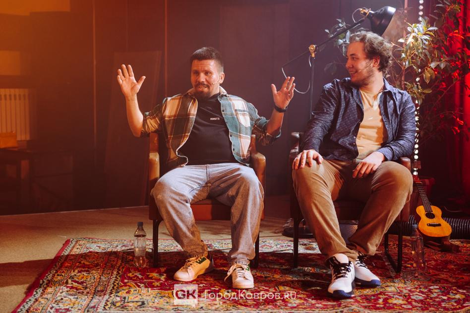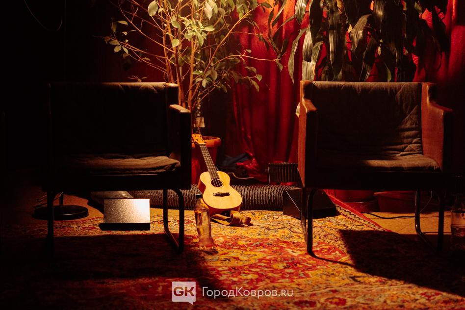 Ну, и самое квартирник. Ещё один флэшбэк. Нет, не культовые ковры из 90-х на сцене, хотя это мне тоже понравилось. Ребята уселись перед зрителями в креслах, неуловимо напоминая участников нынешних деловых форумов. И так же, как бизнесмены-конгрессмены лениво перекладывали с ноги на ногу, почёсывались и всем видом давали понять: ну, что, милые, собрались?..
