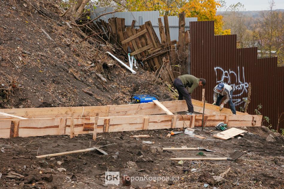 Сегодня на привокзальном спуске к реке были замечены рабочие. Бригада занимается строительством легендарной лестницы к лодочной станции.