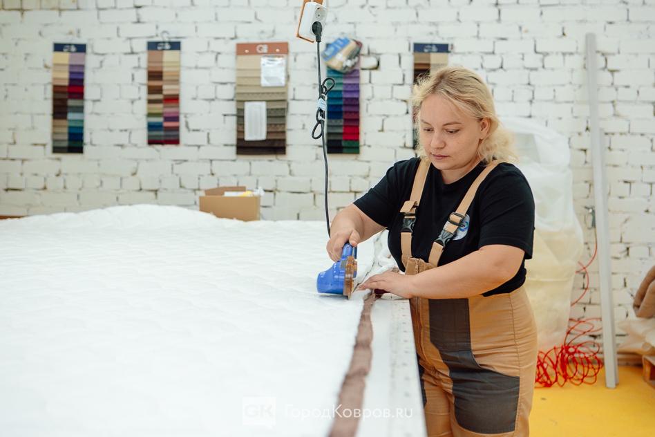 Мы собираем полностью матрас, в размер. Ребята собирают и склеивают каркас. Здесь раскройщик, делает раскрой для дальнейшего отшива изделия. Вот тут стоит окантовочный станок, на котором матрас обшивают. Если в какой-то момент была допущена ошибка, она непременно выявится в процессе сборки. Именно это является максимальной гарантией качества. За три года у нас не было ни одного возврата, связанного с качеством изделия!