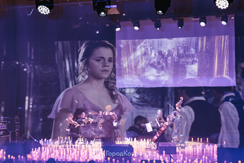Главное чудо ждало публику в зале. Сцена была погружена в таинственный полумрак, который озаряли мерцающие огоньки. Если говорить образно, это было похоже на 3000 свечей, парящих под потолком Великого зала Хогвартса. В реальности же их было не менее 500 — специальные светильники, искусно имитировавшие живое пламя, создавали невероятно уютную и завораживающую картину.