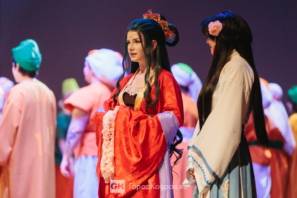 Но главным во второй день была сцена. Начало — два ведущих в образах персонажей арабских сказок. Третий «соведущий» — главный символ фестиваля, тот самый Mikan no yuki, в переводе — «Снежный мандарин». Тут игра слов: мандарин — это и цитрус, и китайский титул.