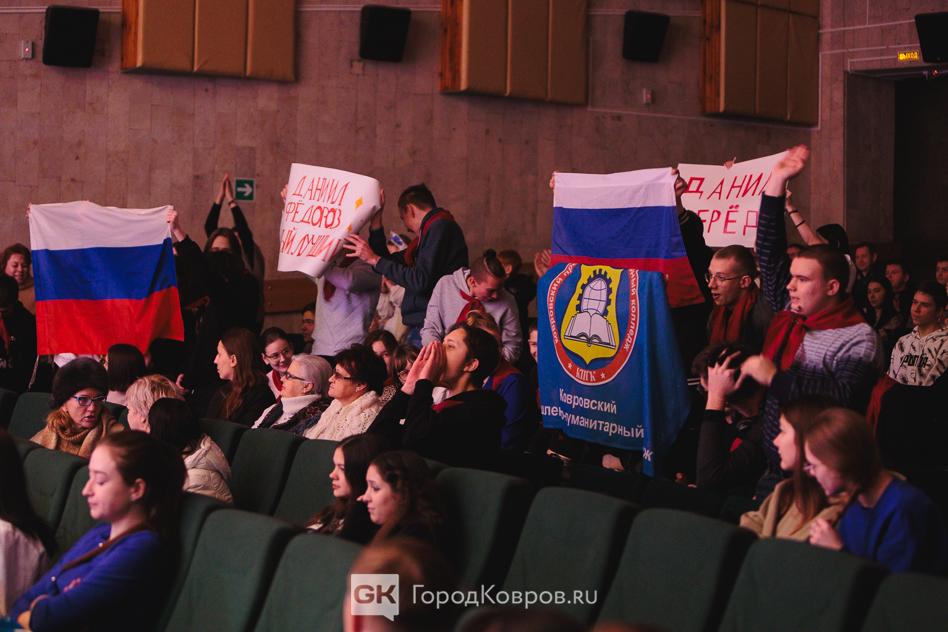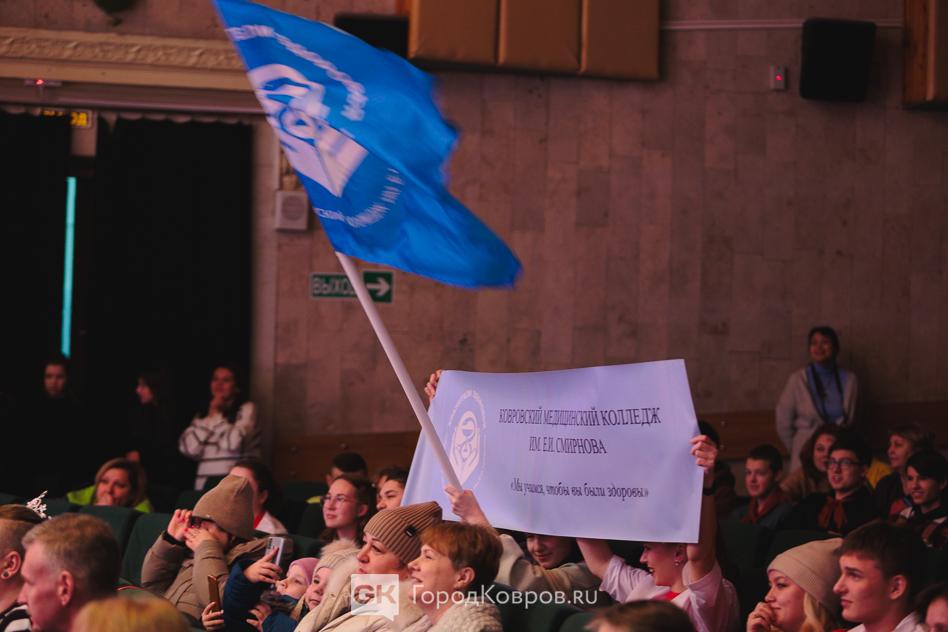 Ковровский транспортный, промышленно-гуманитарный, медицинский и энерго-механический колледжи. Кстати, представителям последнего не позавидуешь — в зале не было группы поддержки, всего несколько человек. Они приветствовали своих нестройными и довольно слабыми голосами. Студенты-участники виновато оправдывали это занятостью и необходимостью где-то работать.