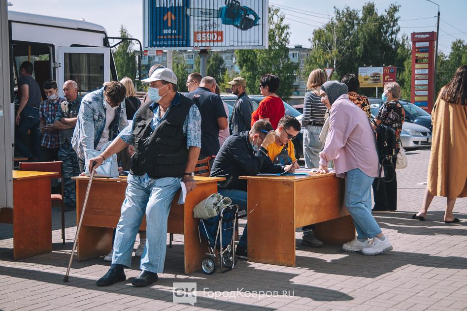 Если по впечатлениям, то увидели следующее. В сравнении с работой мобильного пункта в июле напротив «KOVROVMALL» (там была очень напряженная и негативная атмосфера), возле «Треугольника» было спокойнее.