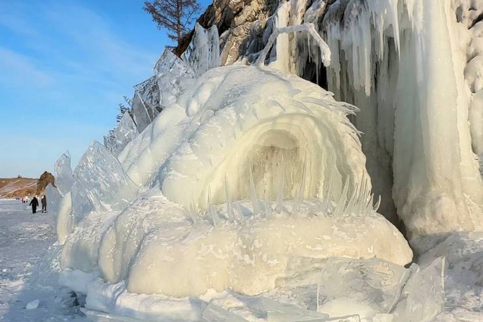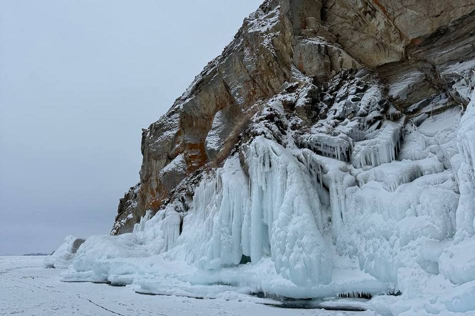 Лёд! Лёд Байкала! Он завораживает! Его цвет, глубина, разновидности!.. То белый, то аквамарин! То гладкий, то припыленный снежинками размером с ладонь! Нависающие многометровые наплески на скалах, разломы и треск льда. Масштабно и очень красиво!