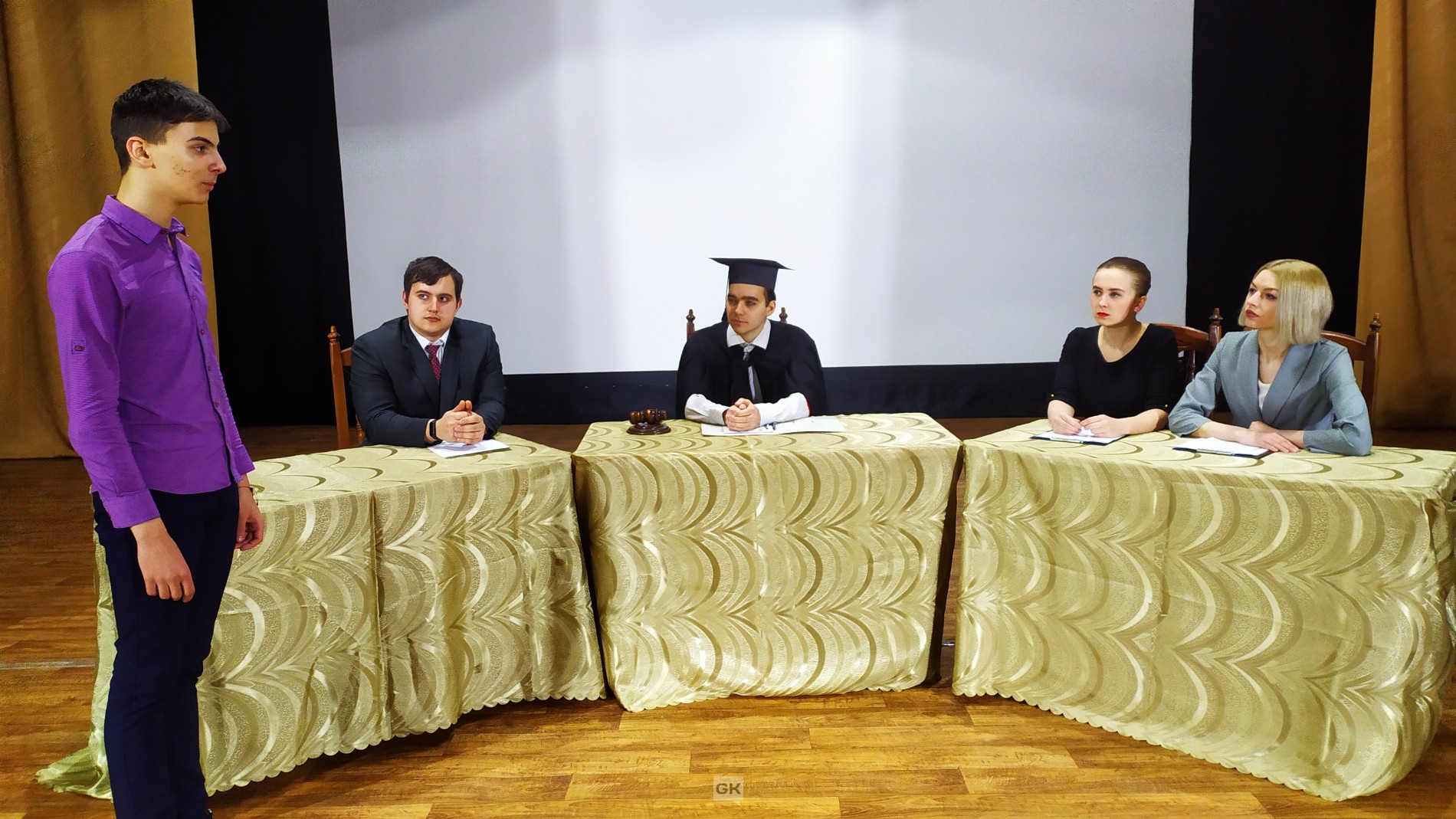Как и положено, в зале заседаний суда присутствовали Прокурор (Наталья Сонина), Адвокат (Виталий Сердюк) и Судья (Андрей Санников). Был вызван Свидетель (Даниил Харченко), который рассказал о своей погибшей подруге.