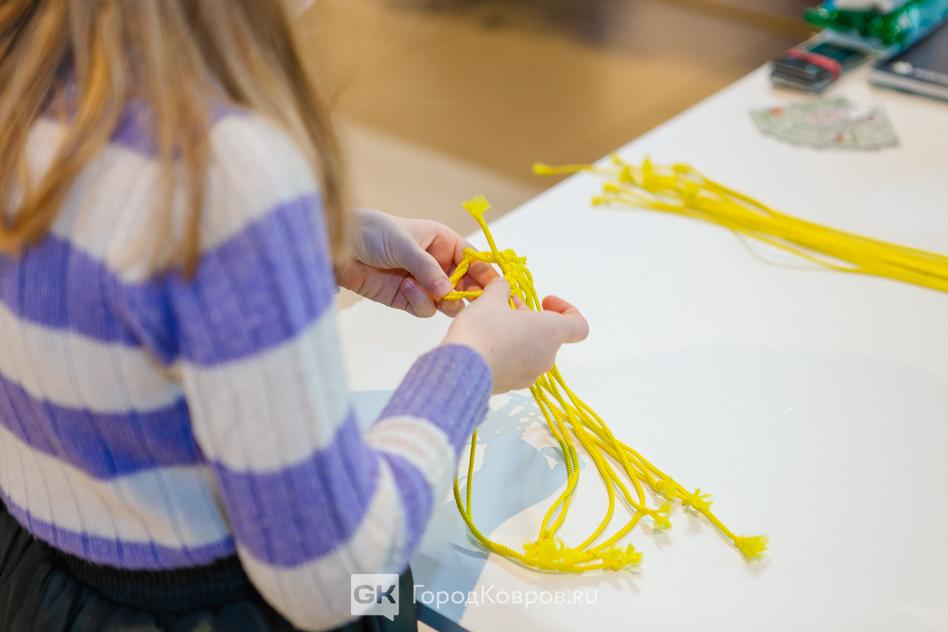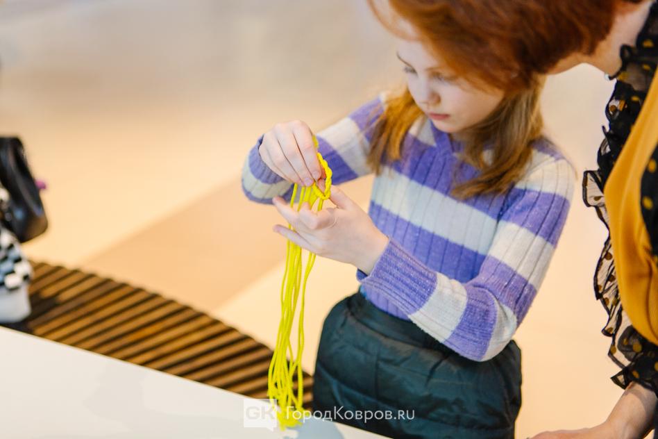 Выходные в Коврове прошли в стиле хэндмейда. Многим запомнился маркет LooKUP, о котором уже рассказано. Ещё одна ярмарка мастеров ручной работы прошла в ТЦ KOVROVMALL. Выставку-продажу дополнил мастер-класс от преподавателя ЦДОД «Родничок» Марины Лариной. Любой желающий бесплатно мог под руководством мастера освоить азы плетения макраме. Мило и просто — отличный новогодний сувенир, сделанный своими руками.