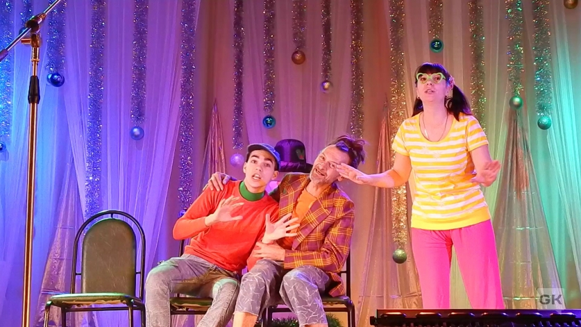 Этот спектакль всегда востребован, потому что он мобильный — в нём нет декораций, актёры работают со стульями, с кубиками — с любым «подручным» материалом. Яркие костюмы, весёлые, задорные стихи и песни, профессионально исполненные старшими актёрами театра А.Хлимоненковым, А.Санниковым и О.Бойко — всё это создаёт на сцене и в зрительном зале добрую, тёплую атмосферу юмора, добра и счастья.