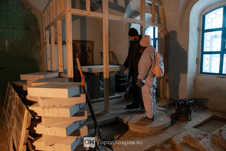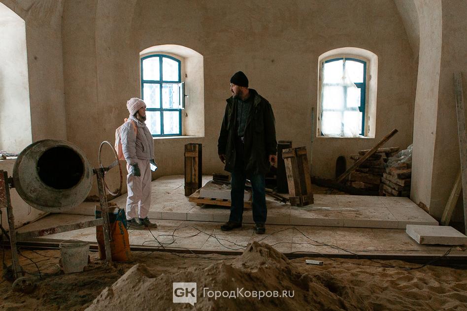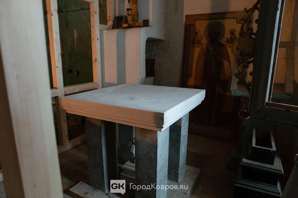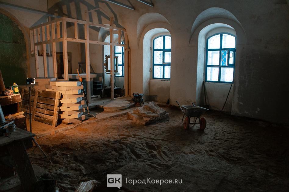 Храм будет в дальнейшем отапливаться. Сейчас помещение делаем, где крестить будут. Ну, и основное помещение. Алтарь восстанавливаем, каменный крест…
