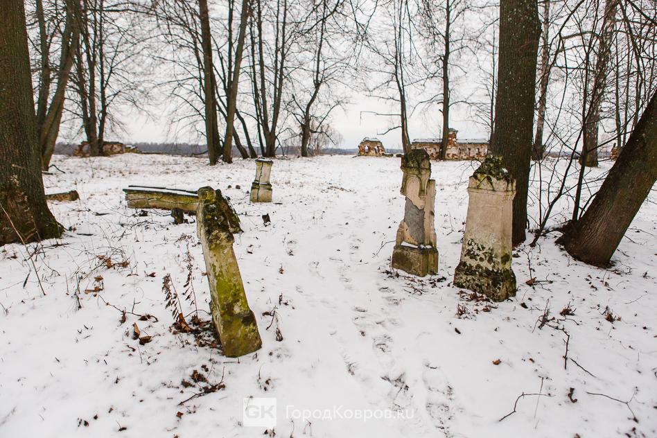 Алексей показывал, что сделано внутри храма, потом мы прошли по прихрамовой территории. Надгробия, большинство из них пришлось восстанавливать — плиты валялись, были разбиты.