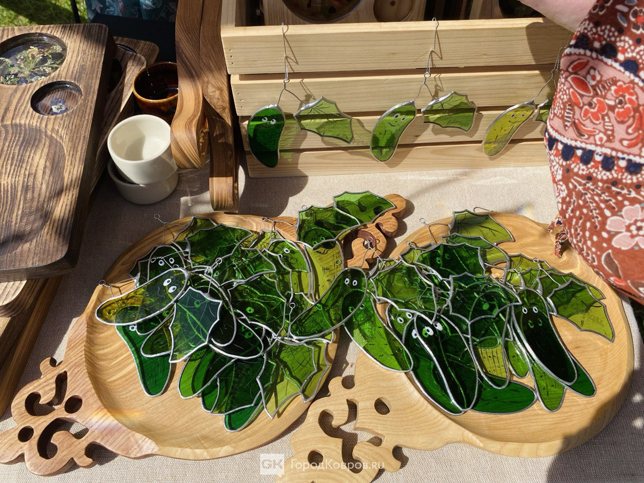 Авторский мерч, дизайнерские банки, наборы с пэчворком, резные разделочные доски — всё это обошлось гостям куда дороже. Зато выбор был богатый и креативный, богатые москвичи уезжали с полными сумками «огуречной эстетики».