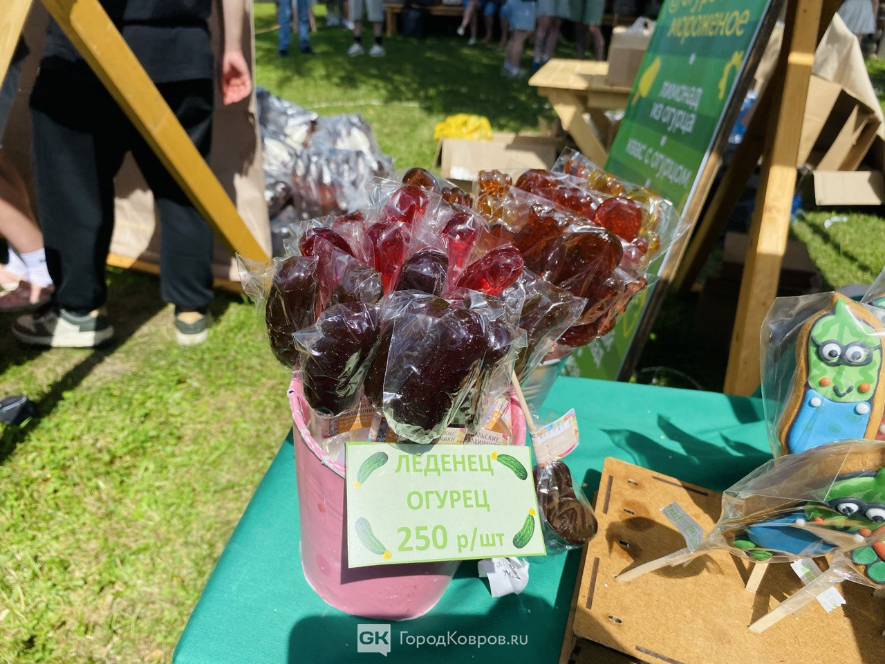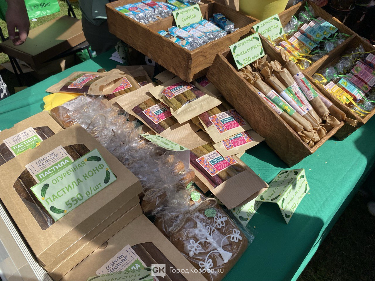 Огуречное варенье — традиционный гастрохит праздника — в этом году продавали под соусом старинной легенды. Якобы сам Иван Грозный его обожал. Правда это или нет — неизвестно, но дешевле 400 рублей за баночку это лакомство не найти. Столько же стоило и огуречное мороженое (тоже на любителя). В целом, большинство угощений и сувениров начинались от этой суммы и выше.