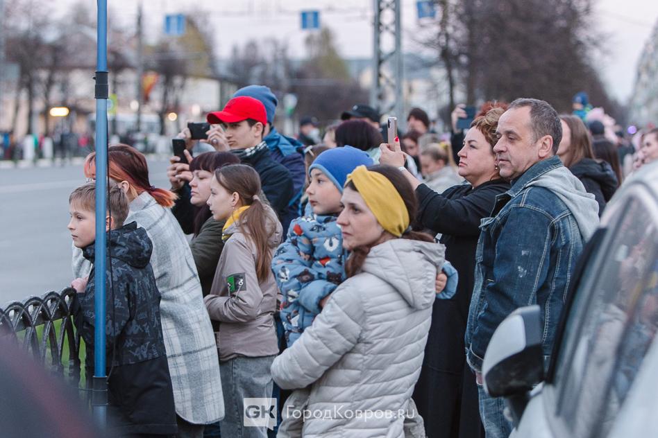 …Людей, пожелавших посмотреть в этом году по ощущениям собралось меньше, чем на предыдущие парады. Странно, даже в пандемию ковровчане на репетицию шли гораздо более массово.