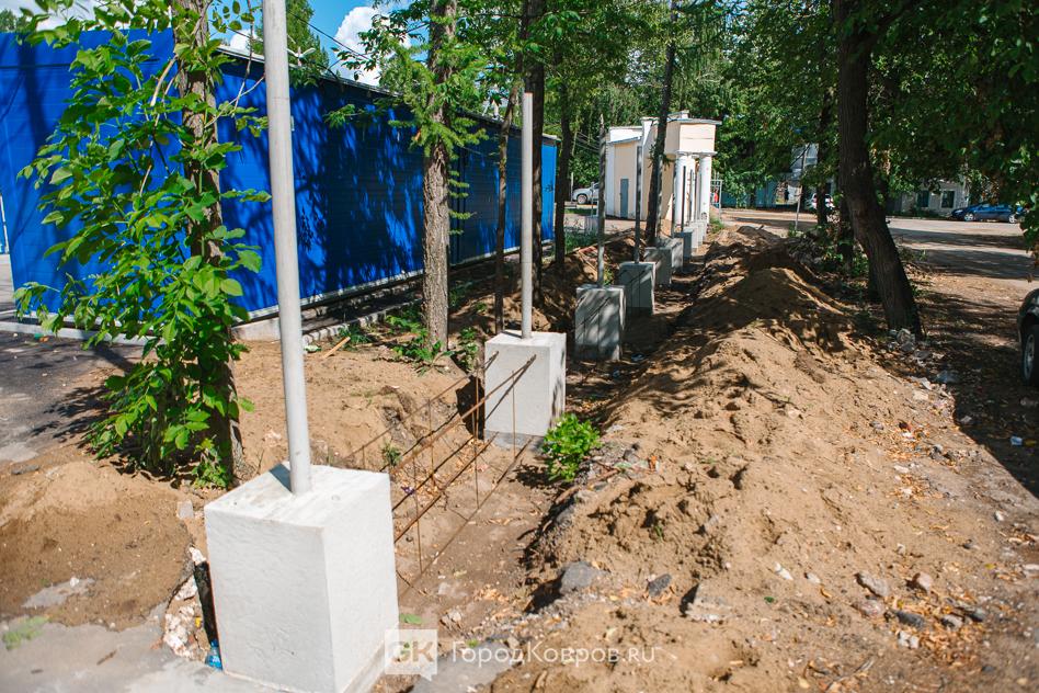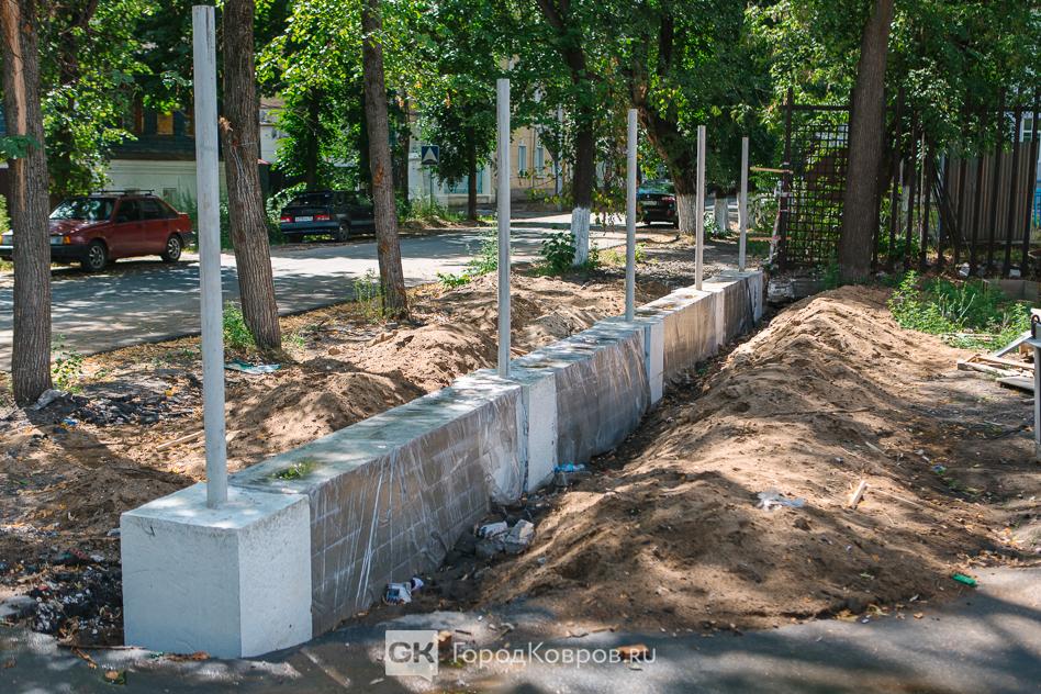 Также бригадир Ильяс рассказал, что новый забор (такой как в проекте, с пентаграммой) почти готов. Конструкция находится в Юрьев-Польском и ожидает отправки в Ковров. Привезти должны к концу недели, как раз будут завершены работы по установке опорных столбиков.