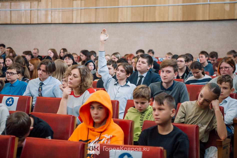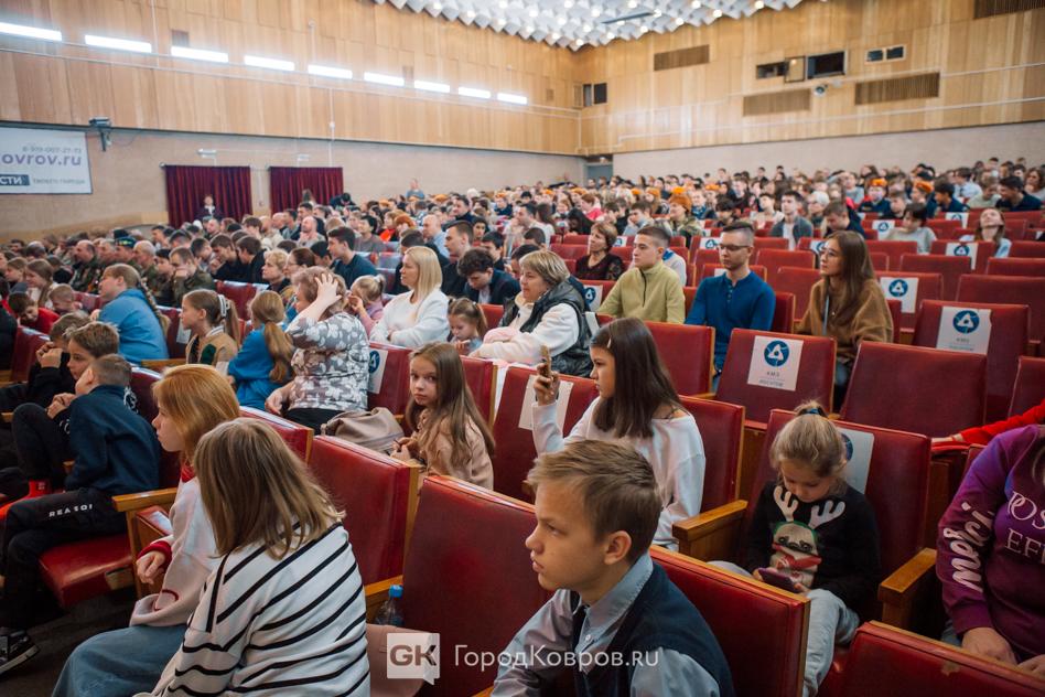 В прошлые выходные в Коврове, в ДК «Современник» прошёл объединённый урок мужества. Более 500 учеников школ города и учащихся колледжей и православной гимназии собрались на встречу со спикером-мотиватором, спортсменом-паралимпийцем и благотворителем Алексеем Талаем.