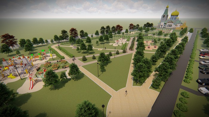 При размещении тематических зон учтено, что рядом будет построен храм. Проектом также предусмотрено мощение дорожек.