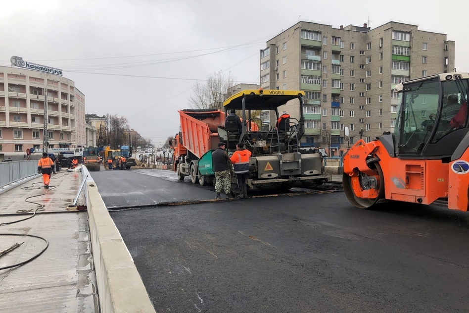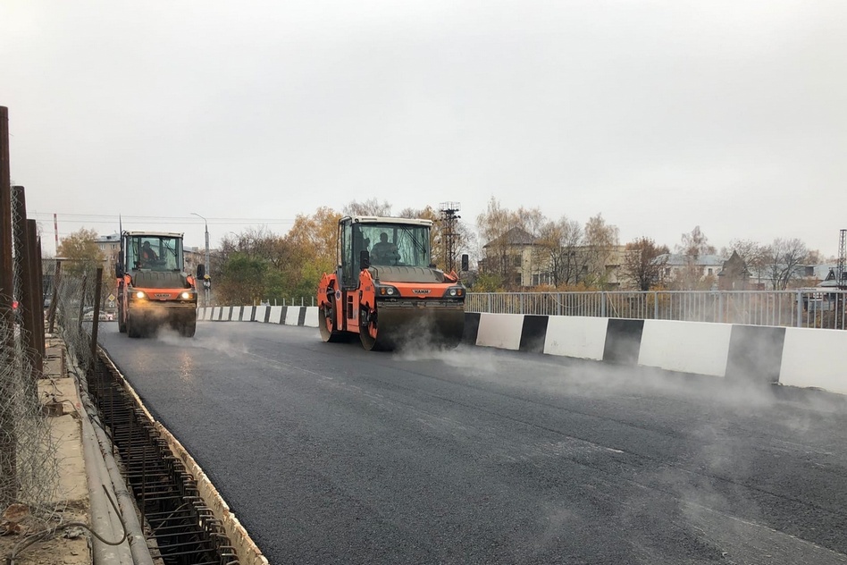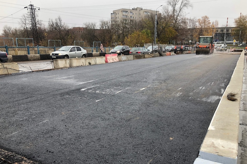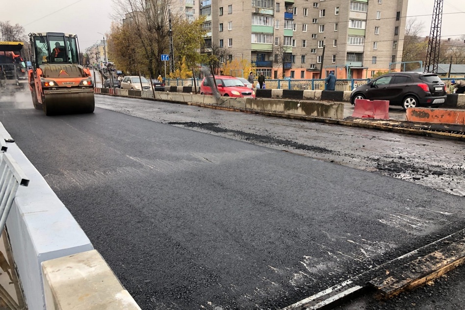 Около 11 утра на путепроводе уже завершали укладку первого слоя асфальта. По словам директора ООО «Дор-Тех» Андрея Канифатова, половина путепровода будет полностью заасфальтирована и пригодна для проезда в течение двух недель.