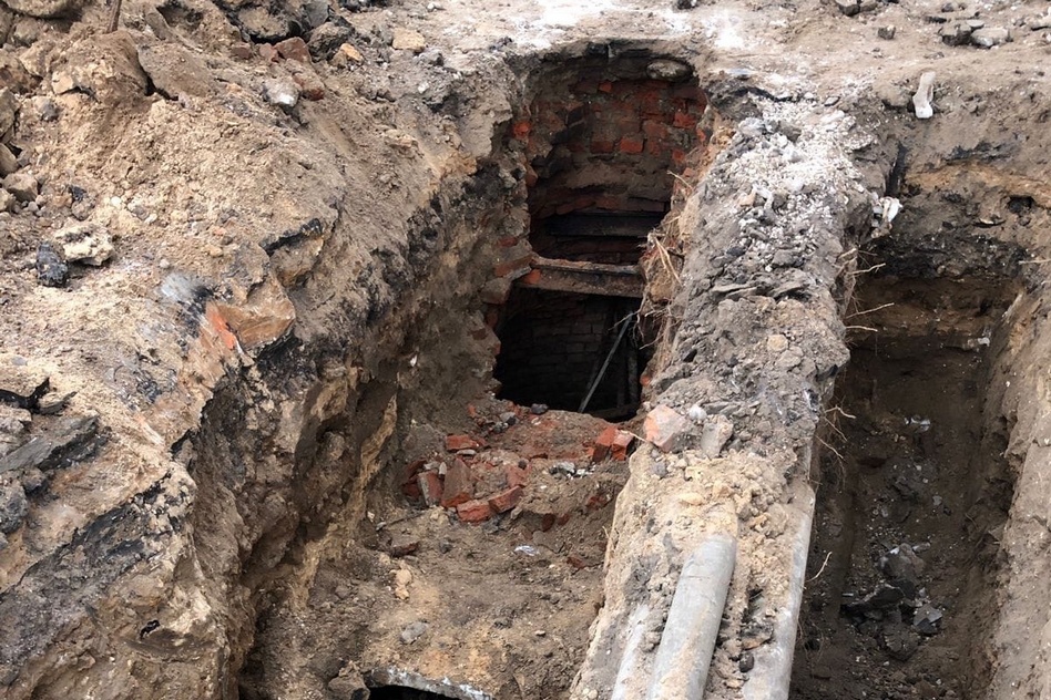 После раскопок строители нарвались на какие-то катакомбы со стороны проспекта [Ленина]. В администрацию мы сообщили, но, похоже, там равнодушны к историческим ценностям. На фото колодец, его дно на глубине пяти метров. Спустились вниз и увидели коллектор диаметром метра 1,5, уходящий в сторону ЗиДа под всей проезжей частью (дальше не видно). Может есть смысл «историков» привлечь?..