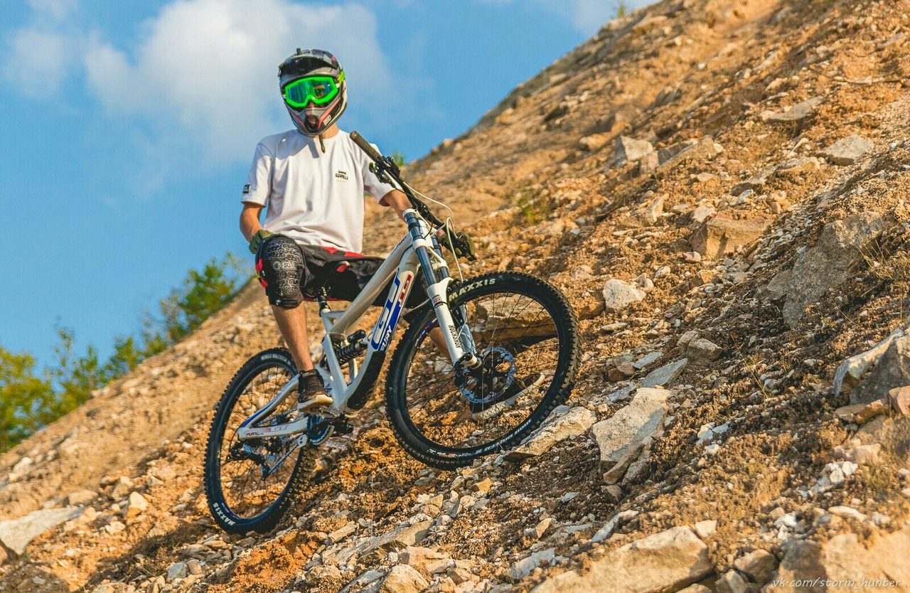 Велосипед для даунхилла и фрирайда с большим ходом подвески, двух коронной вилкой и колесами 27.5. Предназначен только для езды вниз.