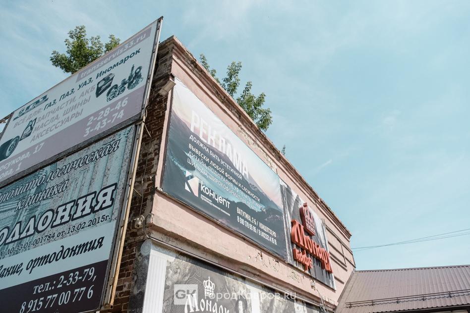 В итоге владелец частично перекрыл стены рекламными баннерами и навесами. Думается, не самое эстетичное решение. Хотя, в принципе, воссоздание исторического облика могло бы придать зданию колорит не меньший, чем очередное подобие «палат царских».