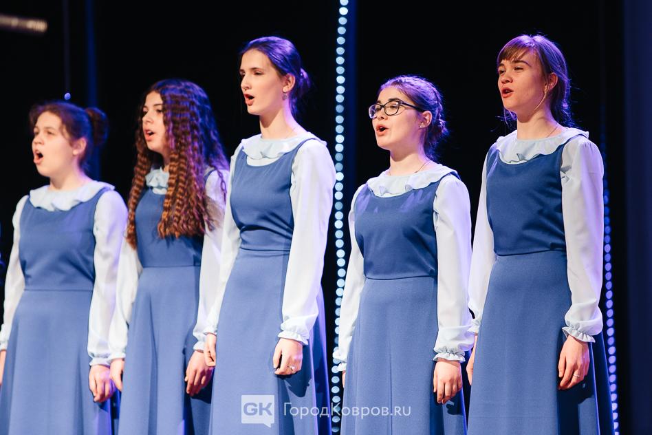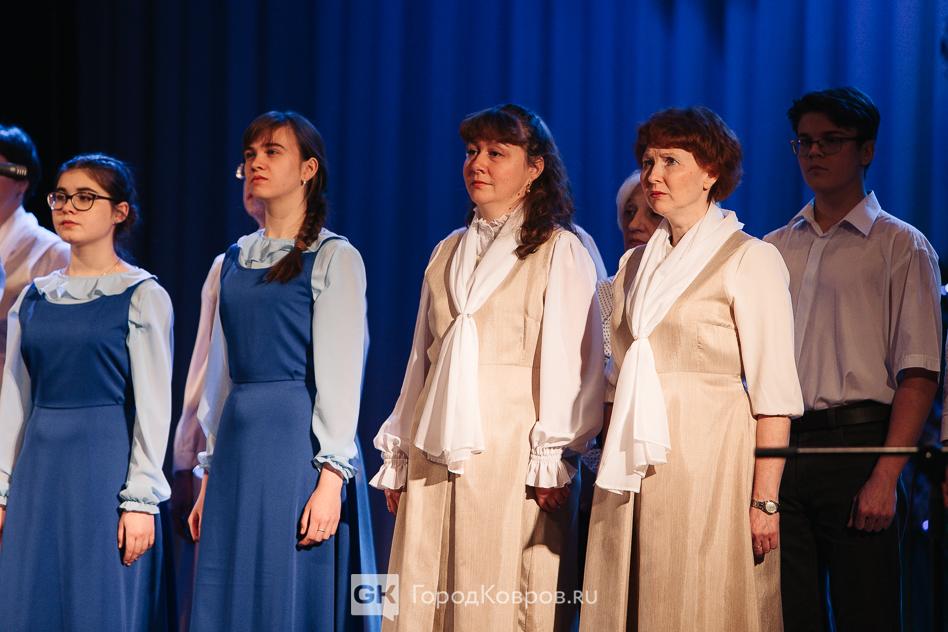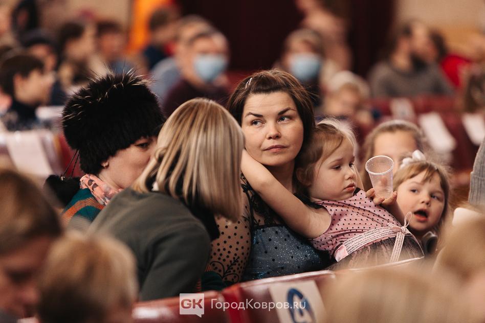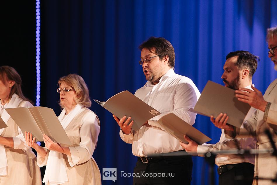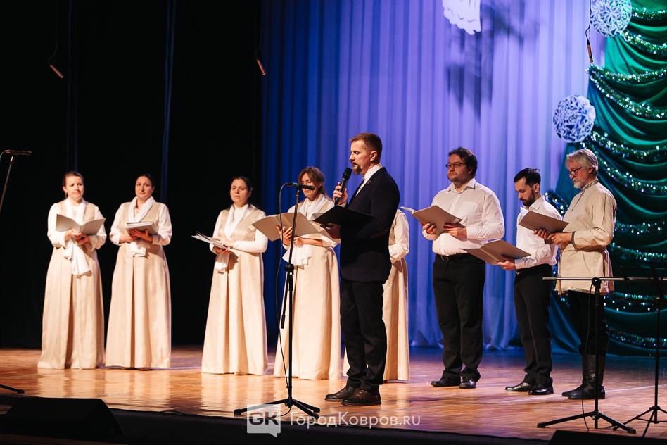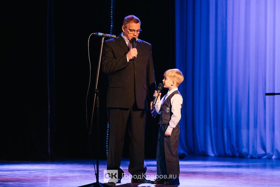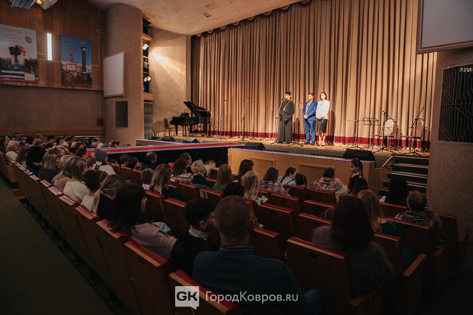 Из мраморного зала участники праздника переместились в большой. Вначале с кратким приветствием со сцены к зрителям обратилась глава Коврова Елена Фомина, вице-спикер Сергей Кашицын и представитель духовенства отец Михаил (Чернов).