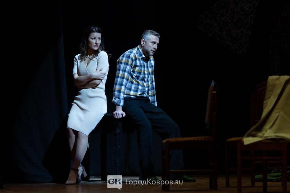 На сцене ДК имени Дегтярева в Коврове 29 и 30 марта прошло два спектакля театра «Вертикаль». Литературный материал родом из СССР, однако режиссёрское решение руководителя театра Евгения Соколова превратило советскую мелодраму в актуальную пластическую и очень жизненную постановку.