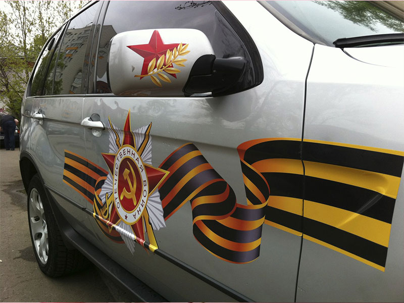 Так, например, в Якутии автомобилисты собрали больше пятидесяти машин в форме звезды, а после составили из авто надпись «9 мая».
