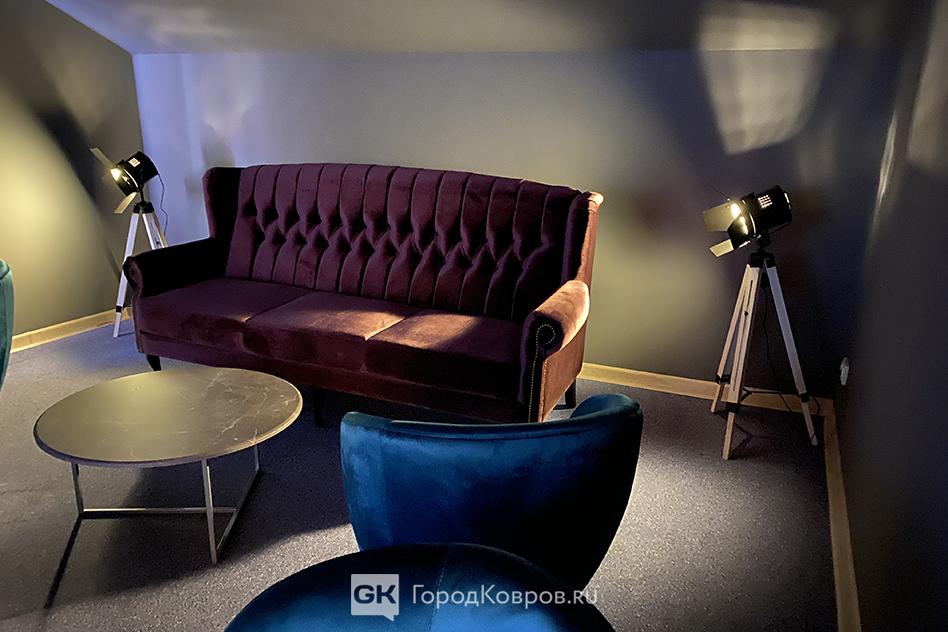 Про второй этаж. Там, как уже было сказано, мини-кинозал, красивый, пафосно обставленный. И в нём можно было бы помимо заявленных семи кинофильмов показывать документалку, связанную со съёмками в Суздале или даже во Владимирской области. Или что-то ещё, но не только кинофильмы, однозначно.