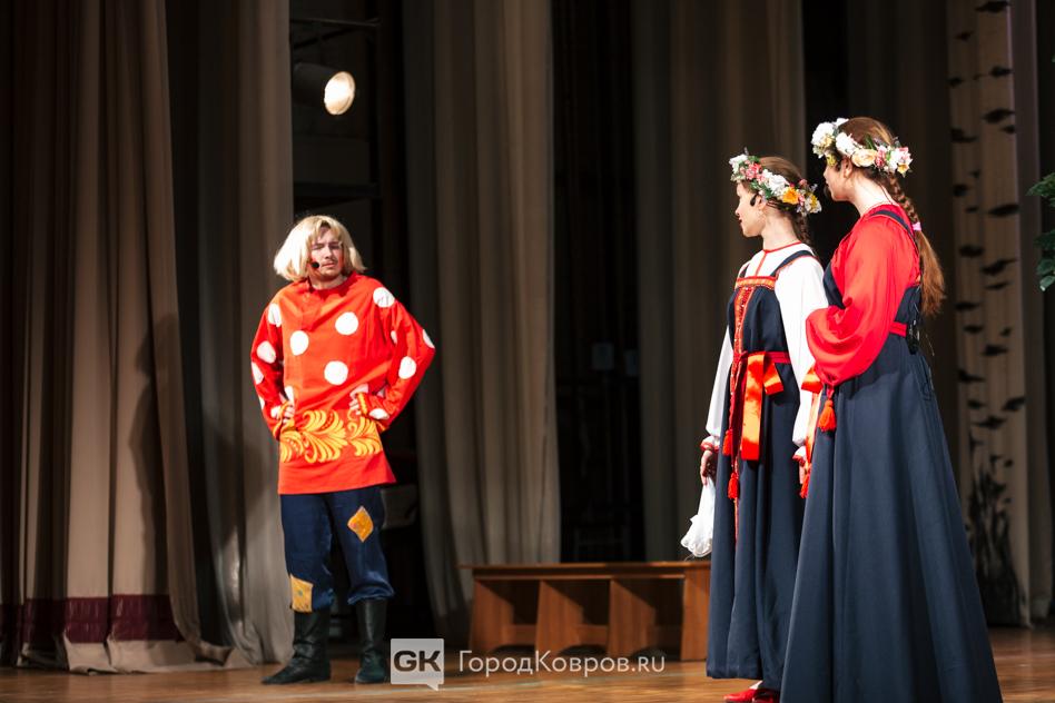 Речи произнесли, еще раз напомнили о празднике. Концерт стартовал. Программа построена на русских сказках, поэтому флэр народности почувствовали сразу. На сцену вышли девушки в русских народных сарафанах и с венками на голове.