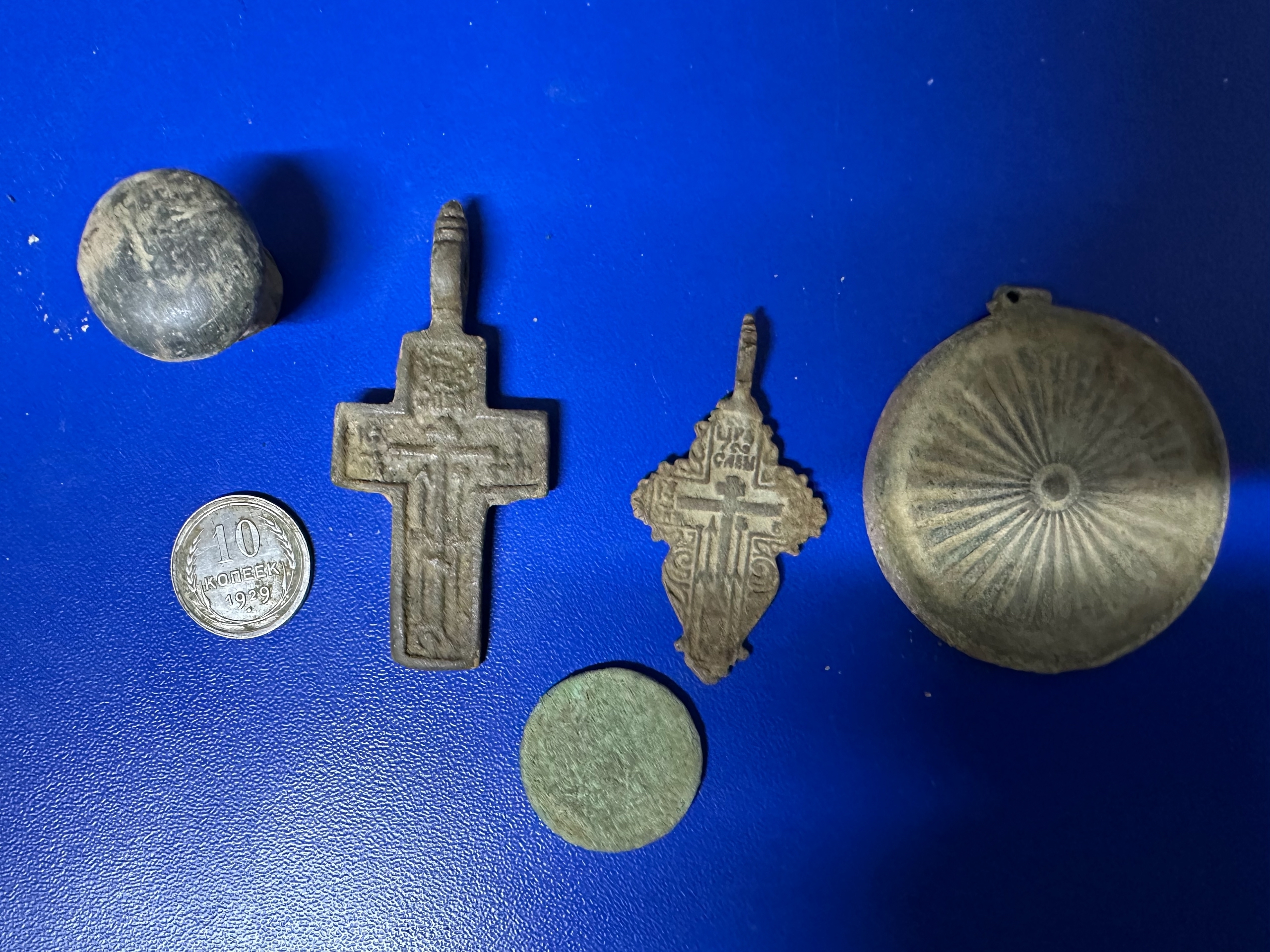 Самое интересное, пожалуй, кусок наперсного креста. Судя по форумам, это 15-16 век, здесь сложно найти достоверную информацию, она везде разнится. Схожи лишь фотографии и описание, в продолжении он должен быть килевидным. Подобных находок у меня совсем мало, да и их сохранность оставляет желать лучшего, поэтому всё оседает в личной коллекции на радость будущим внукам.