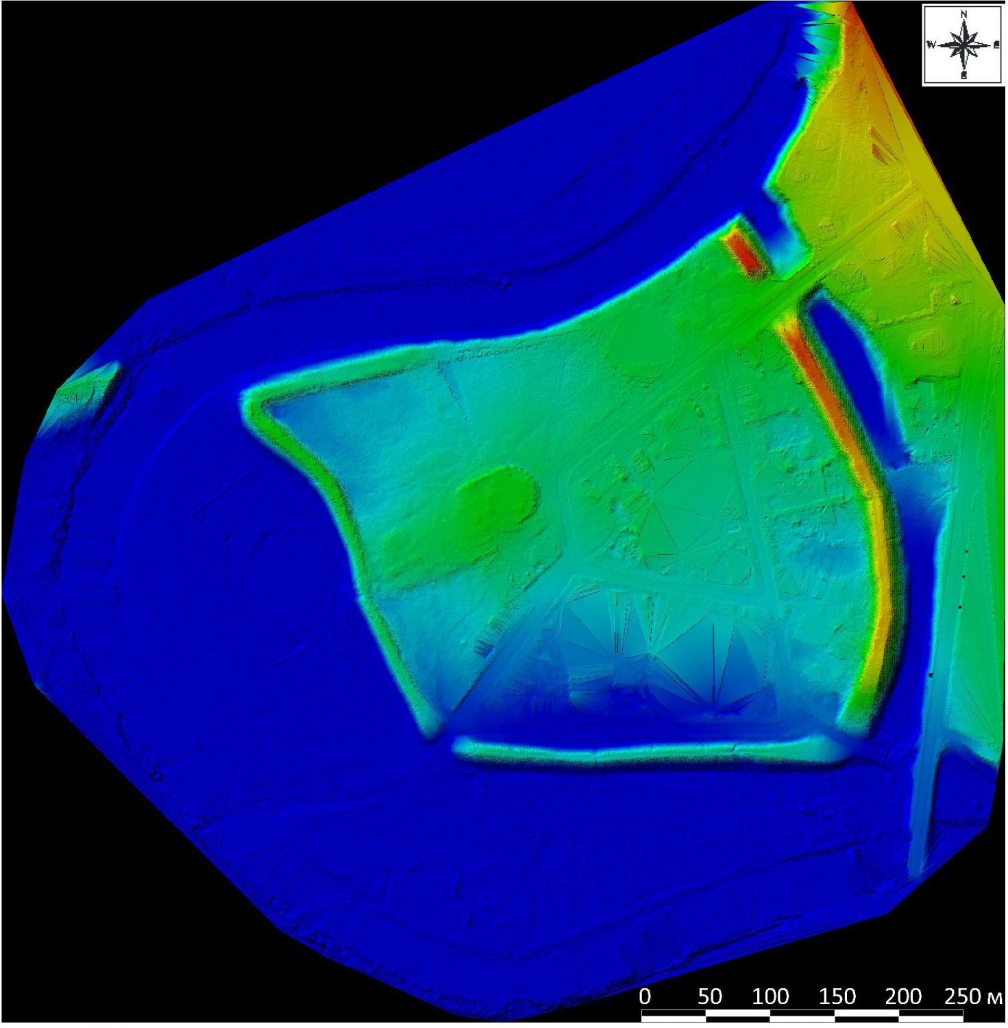 Сканирование с помощью LiDAR-технологии не принесло значимых открытий, но позволило уточнить детали: истинные размеры кремля и его укреплений. Итак, цифры. Площадь кремля по внешней стороне валов – 15,7 га, площадь внутри валов – 11, 9 га. Общая протяженность валов – 1160 м. Высота вала с внутренней стороны – от 1,6 м в северо-западной части до 6,3 м в восточной части. Высота вала от дна рва – 7,2 м в южной и до 11,3 в восточной части кремля. Ширина вала в основании – от 18,5 м в западной части до 29,1 в восточной. Ширина рва –25-46 м, глубина рва – 4,4-10,3 м.