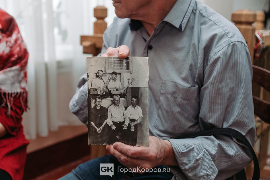 Даром Александра Максимова стала редкая семейная фотография. На ней его отец – Пётр Максимов и его коллеги, один из которых держит в руках миниатюрный макет экскаватора. Снимок, по словам дарителя Александра Максимова, был сделан перед поездкой ковровчан в Москву: