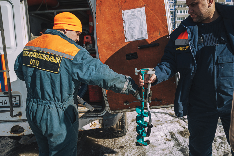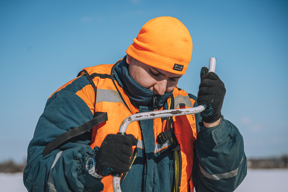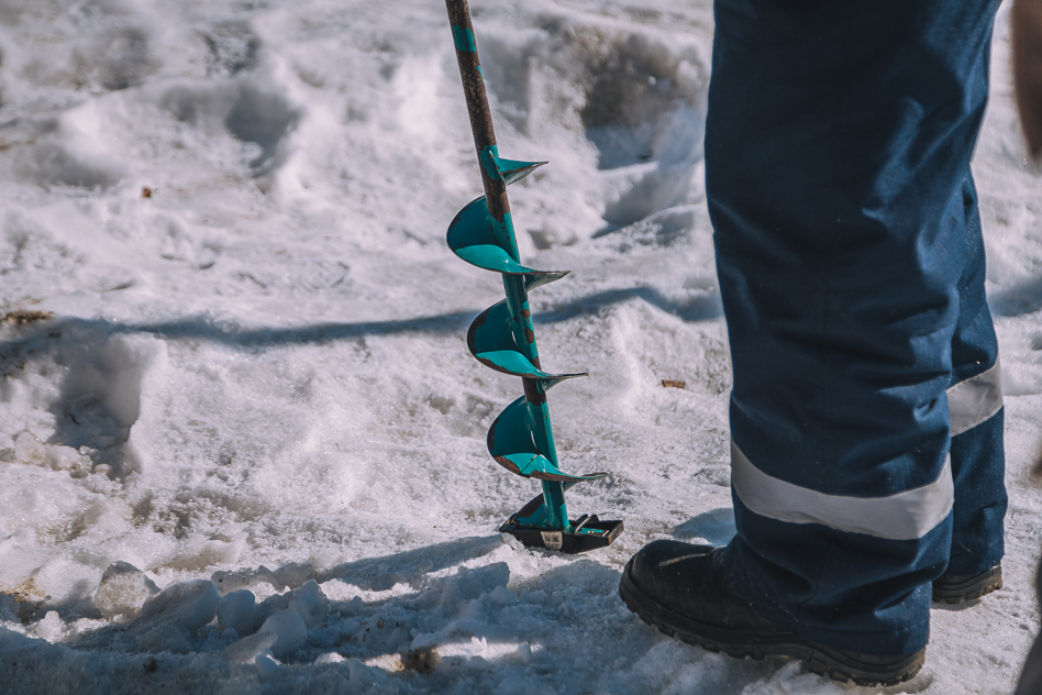 А дальше начинается все та же стандартная рутина. Сделать лунку. Замерить лёд. Результат передать дежурному. И можно возвращаться.