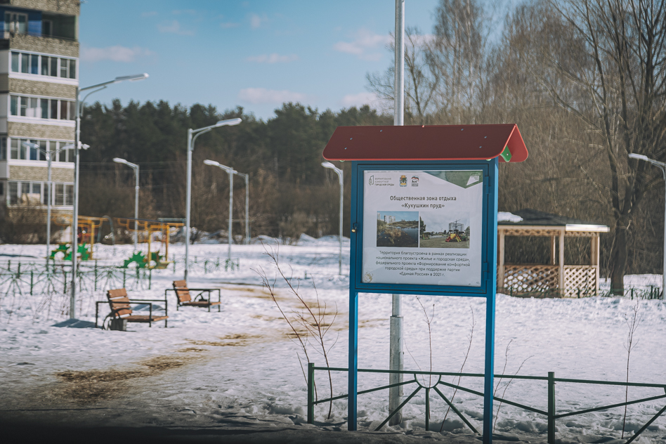 Первой остановкой в этом небольшом путешествии стал «Кукушкин пруд». Стоит напомнить, что летом прошлого года на нем прошли работы по благоустройству. Поэтому людей на территории пруда прибавилось, особенно детской аудитории. Сам пруд находится рядом с жилыми домами и школой. Поэтому проверку льда здесь проводят серьезно.