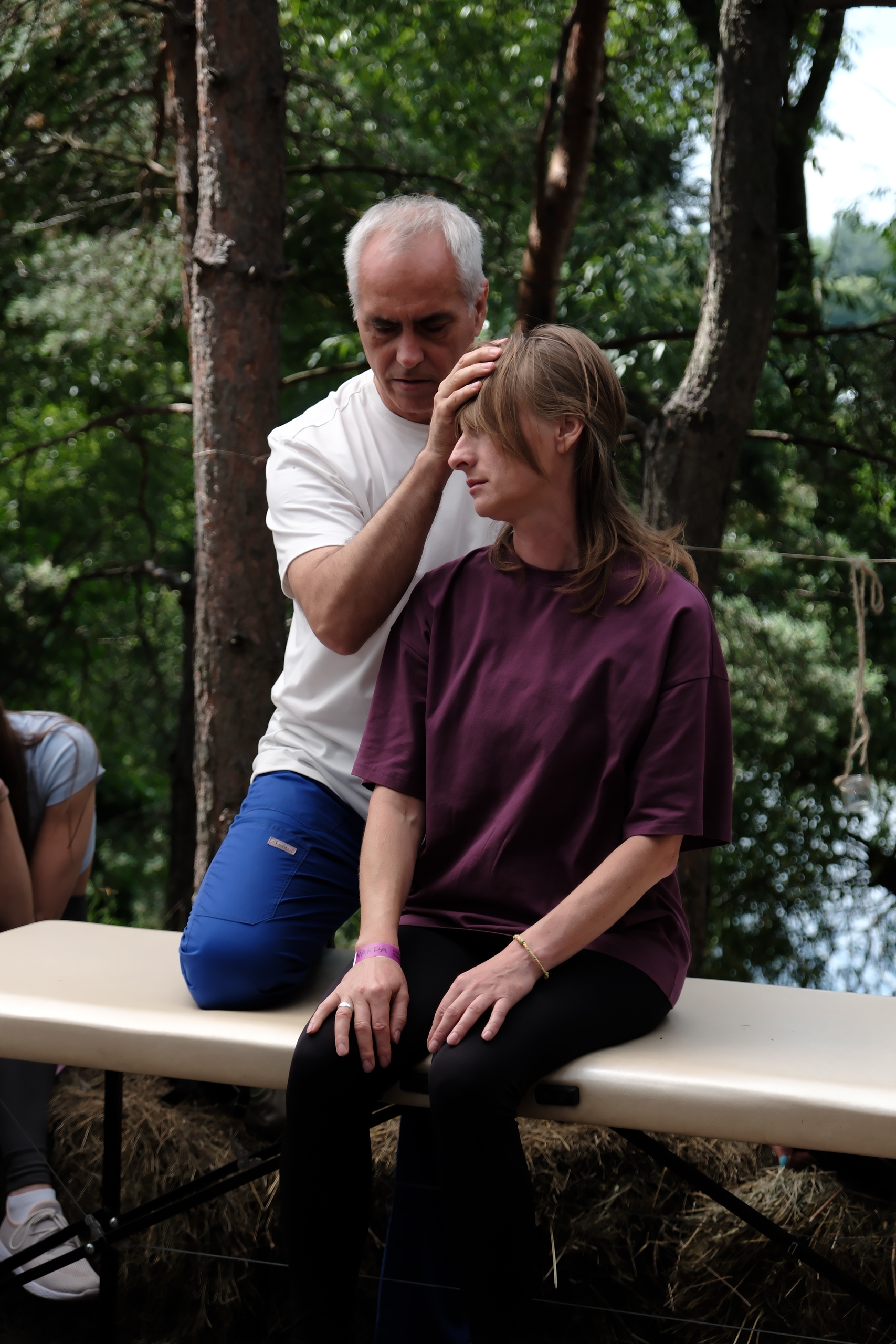 Сеанс, по его словам, может включать работу и с телом, и с эмоциями, и с тем, что он называет духовным.