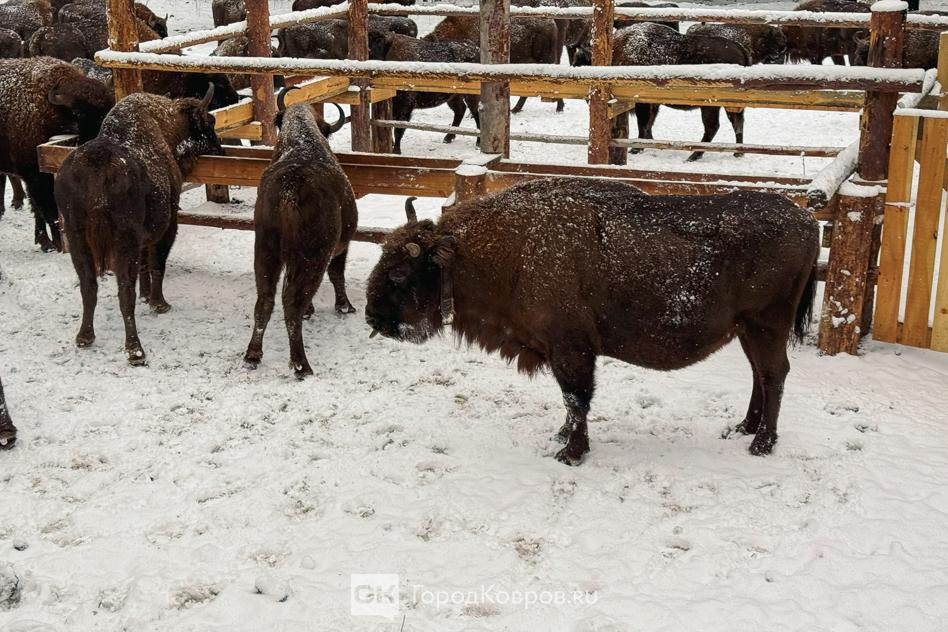 Мы около 20 минут наблюдали за тем, как животные бродят возле кормушки. Порой были даже драчки за место у жёлоба с зерном. Но, по-моему, несерьёзно, просто попадались, видимо, принципиальные зубры, которым было важно, кто рядом с ним жуёт.