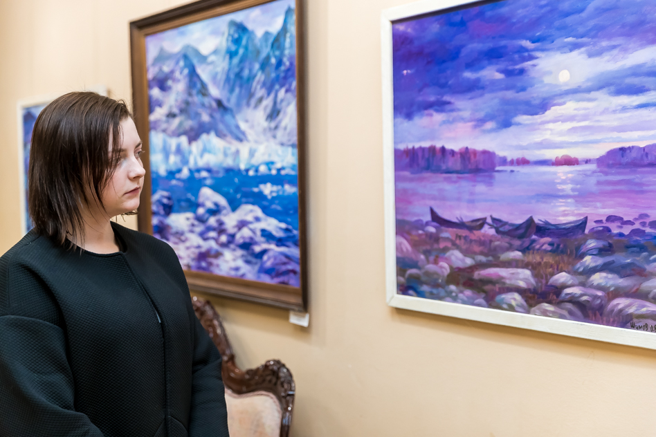 Работы Олега Шумова поистине завораживают. Северные пейзажи, выполненные в необычном цвете заставляли гуляющих по выставке замереть на несколько минут, для изучения каждой детали его картин.