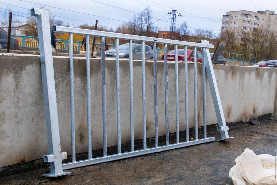 Выполняются подготовительные работы по некоторым направлениям. Делаем разметку для стоек ограждения, разбираем опалубку. Также срезаем шпильки и стараемся провести под мостом трубу ПНД для кабельных линий. До конца недели планируется установка ограждения на одной половине, а к 26 октября на другой.
