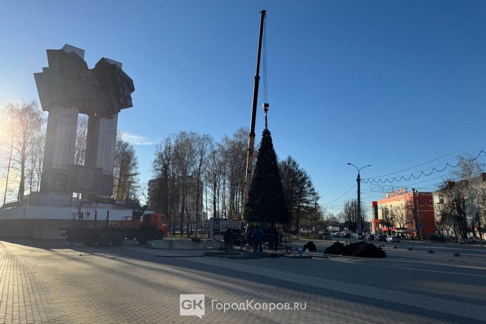 В Коврове сегодня, 26 ноября, начали устанавливать главную городскую новогоднюю ёлку. По традиции она располагается на площади 200-летия города.