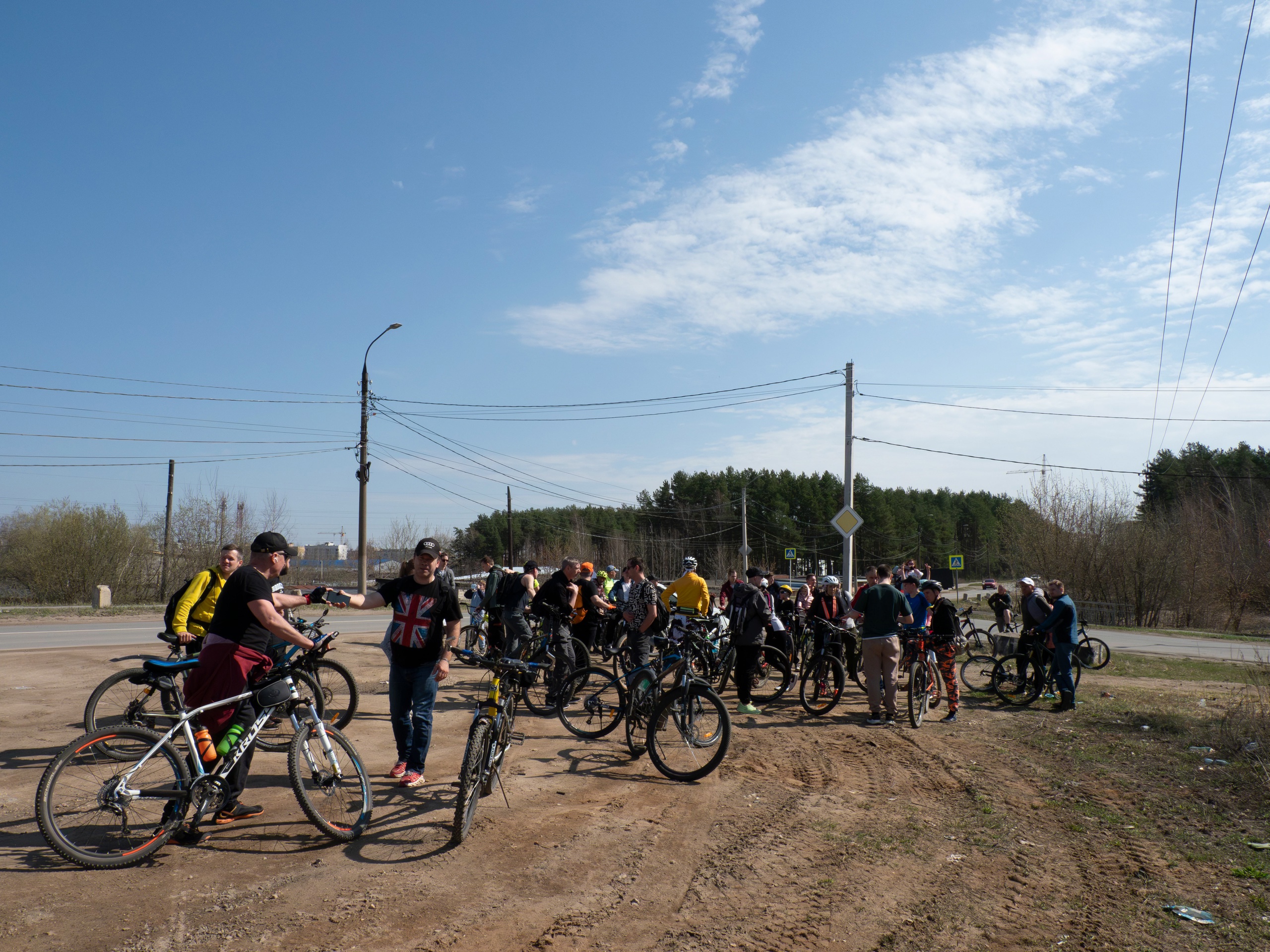 Велосипедисты доехали до деревни Погост — туда-обратно около 20 километров. Желающих обкатать заскучавшие с зимы велосипеды оказалось немало — больше пятидесяти человек.