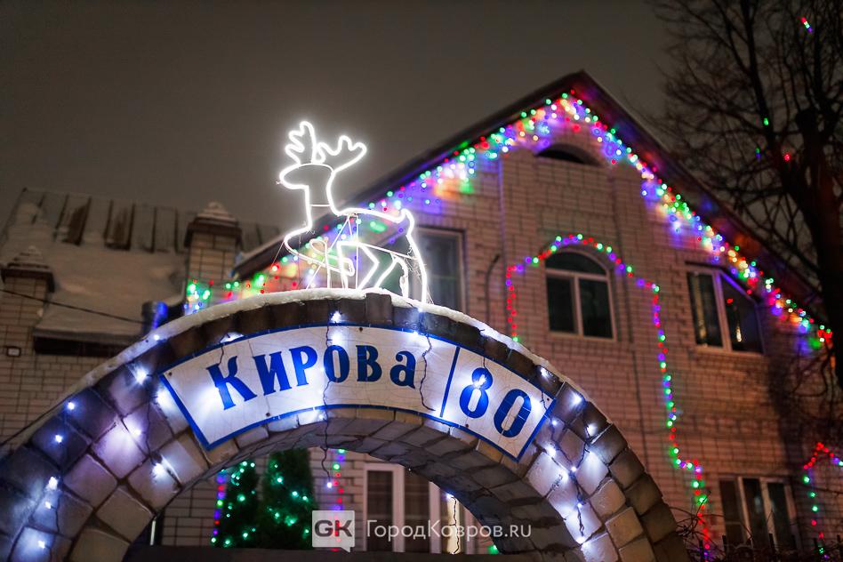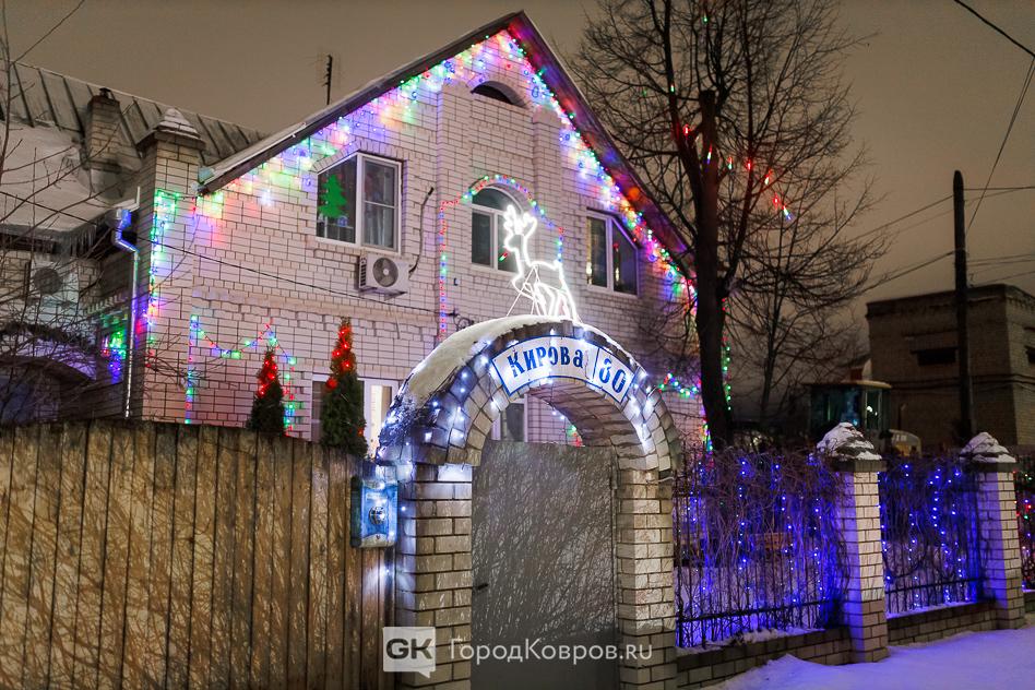 Всё больше жителей нашего города (и это очень замечательно) начинают уделять внимание тому, как их жилища выглядят со стороны в Новый год. Надо отдать должное хозяевам дома, потребовались усилия, чтобы протянуть электрику по всему фасаду, забору и крыльцу. Даже инсталляцию с оленями сделали. Улица Кирова на данном участке не слишком щедро освещена, поэтому такая красота в определённом смысле ещё и функциональна — вечерним пешеходам дорогу освещает.