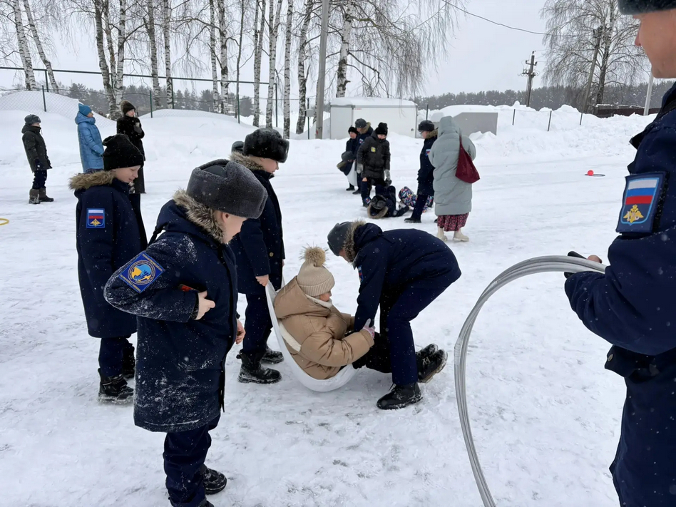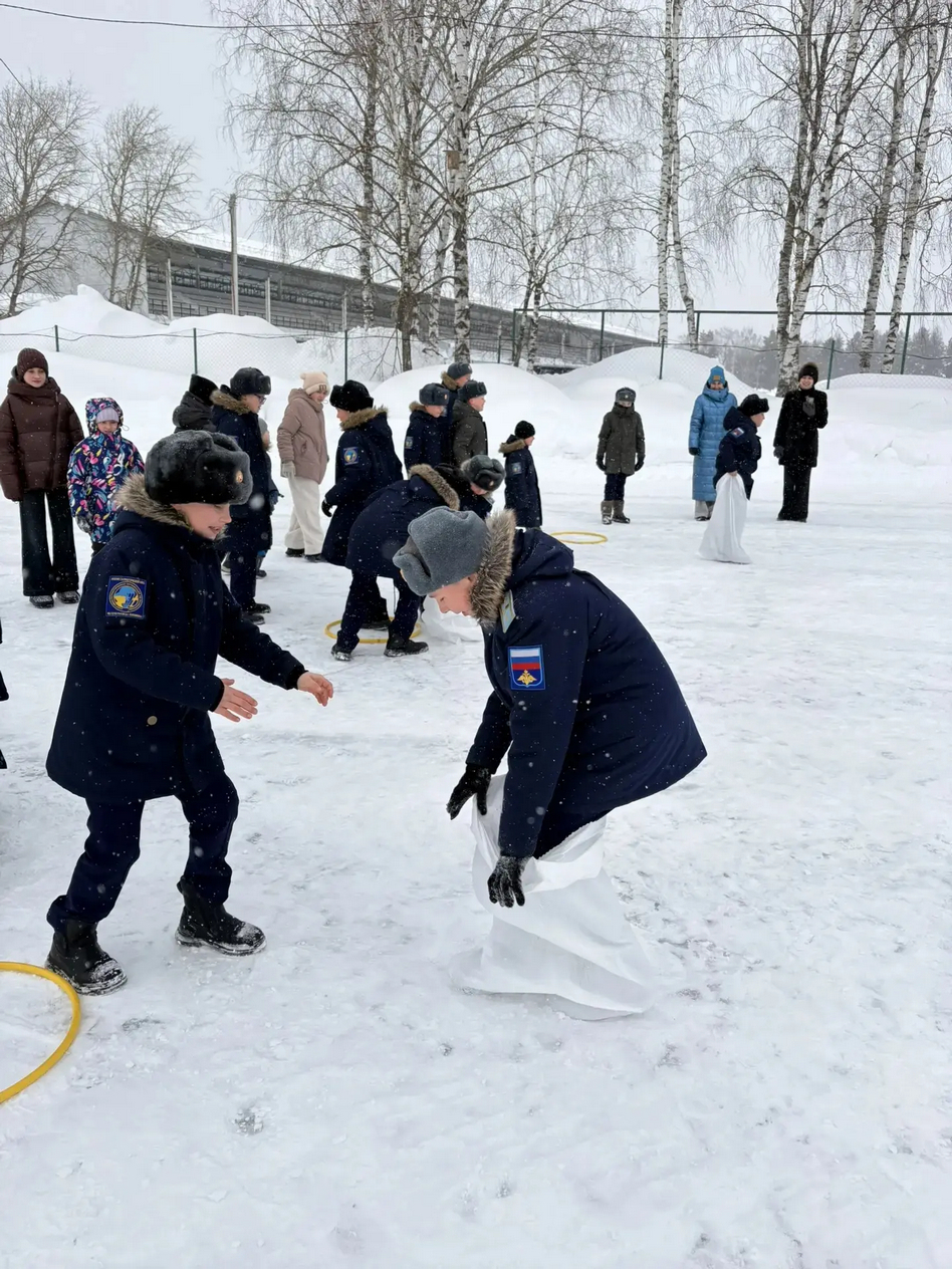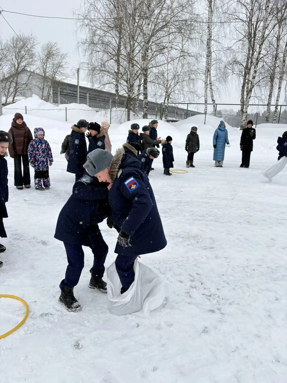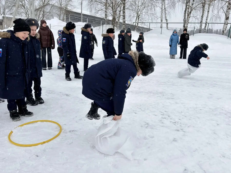 А дальше праздник продолжили очень весёлые старты на свежем воздухе. Ловкие парные передвижения в одном обруче доказали, что ребята умеют договариваться и чувствовать друг друга. Доставка ценных «грузов» убедила всех: самое необходимое всегда будет доставлено в целости и очень быстро. Прыжки в мешках по скользкому снегу показали не только ловкость, но и то, что более сильные и взрослые всегда готовы помочь тем, кто послабее. А «эвакуация» на подручных средствах заставила сорвать голос болельщиков. Каждая команда выбрала свою тактику, но слаженное взаимодействие и взаимовыручка были у всех ребят.