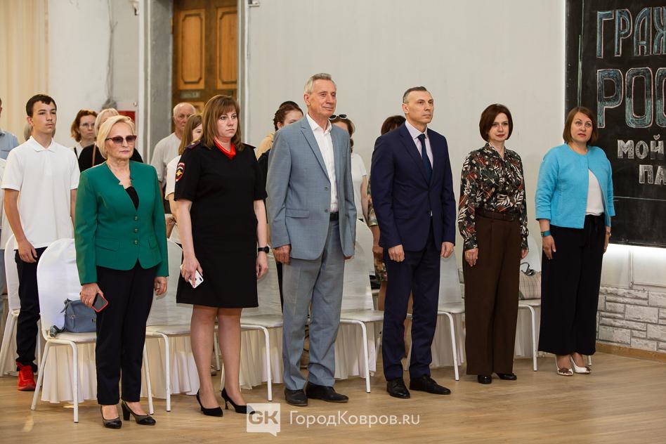 Почетными гостями такого значимого для ребят и их родителей события стали заместитель главы города Максим Нечваль, председатель Совета народных депутатов Анатолий Зотов, помощник депутата Госдумы Людмила Никитина, начальник отдела по вопросам миграции межмуниципального отдела МВД РФ «Ковровский» Юлия Афанасьева.