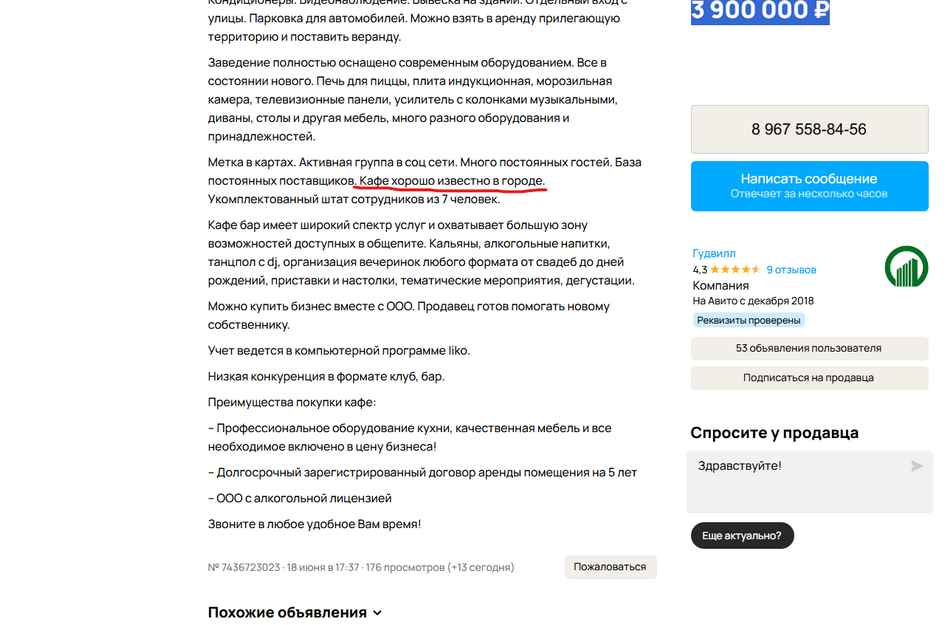Недавно на АВИТО появилось объявление о продаже, которое заинтересовало. «Готовый бизнес. Кафе. Клуб. Бар».
