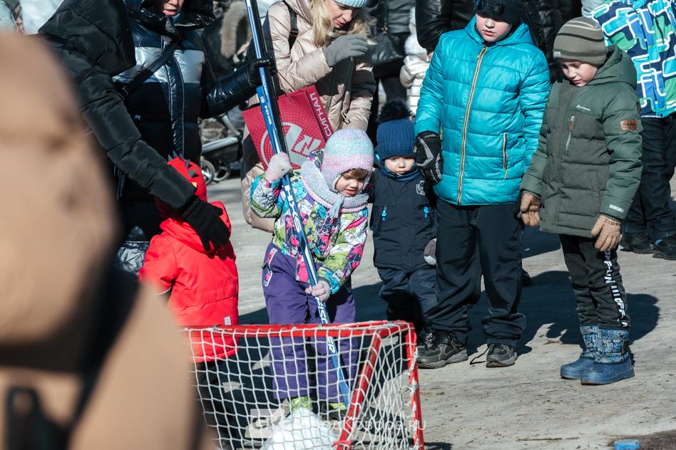 Хоккейная коробочка в парке — одна из инноваций прошлого года. Лёд уже изрядно подтаил, и маленькие хоккеисты как будто стремились наверстать всё, что за стремительно убегающую зиму не откатали…