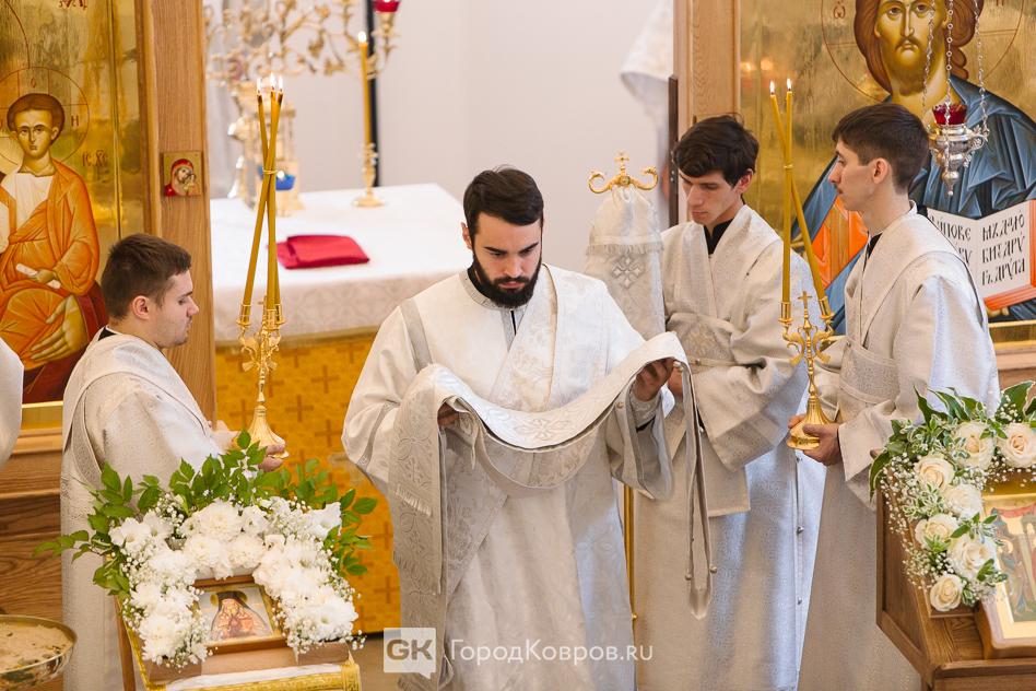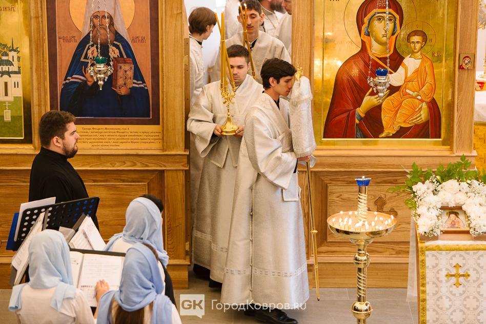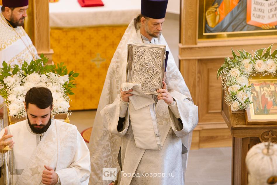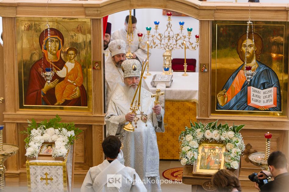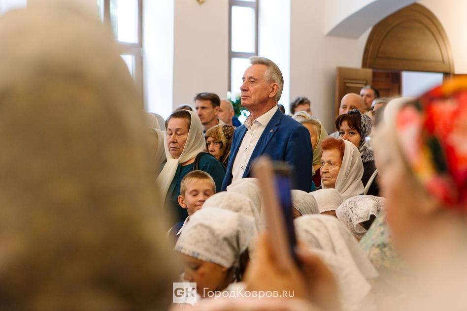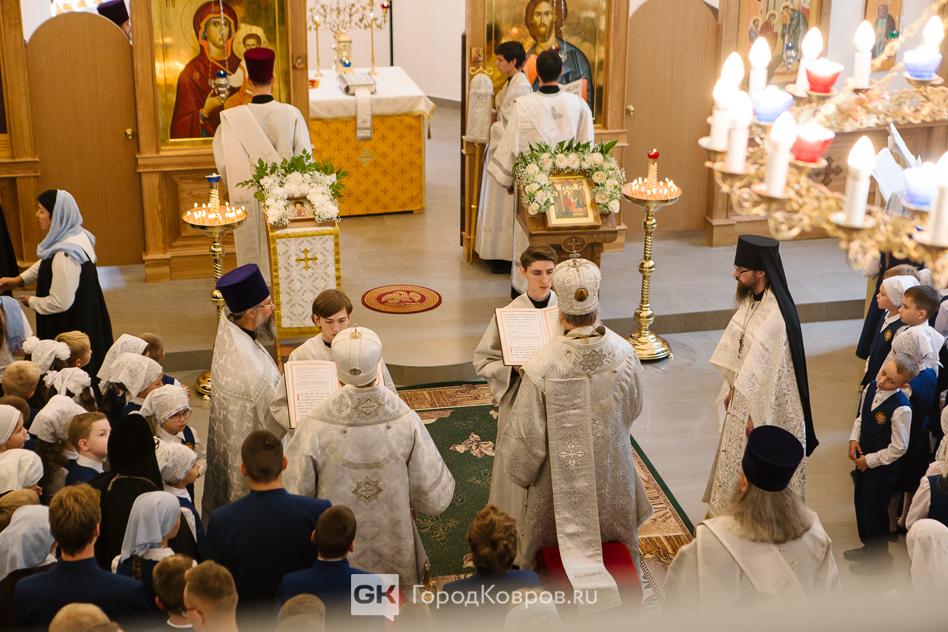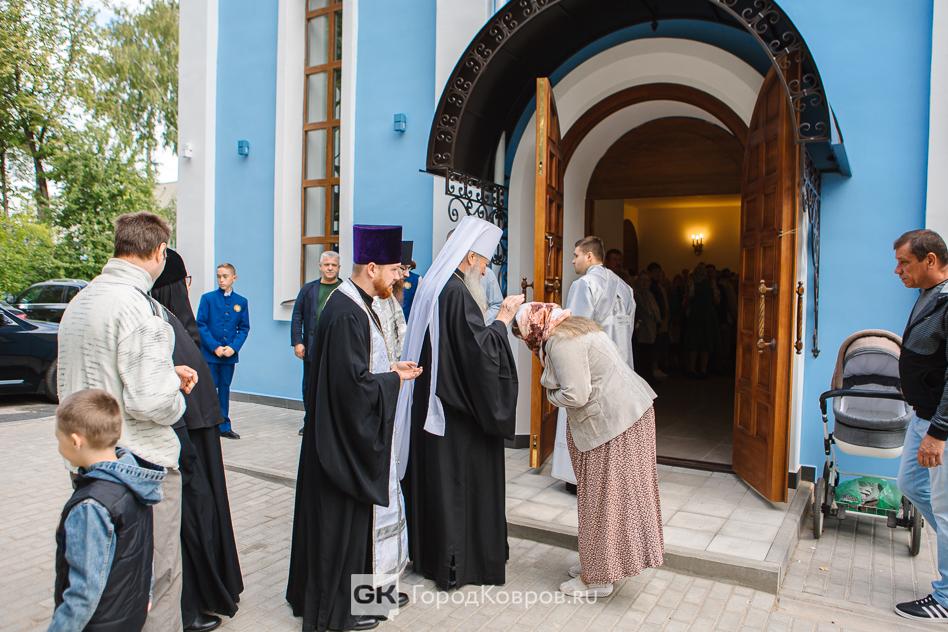 Митрополит Тихон, обращаясь к гимназистам и их родителям, к наставникам гимназии, отметил, что открытие новых храмов — это радостное событие, и пожелал Коврову увеличения числа православных христиан. Митрополит отметил, что важную роль при строительстве храма сыграл директор православной гимназии Михаил Бунтилов. Отцу Михаилу была вручена церковная медаль.