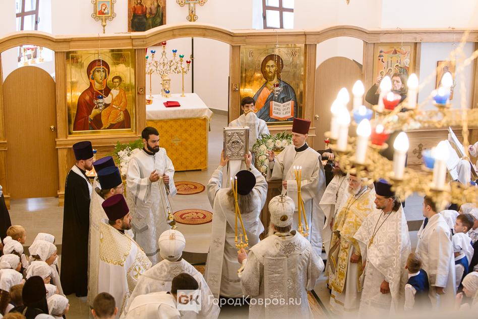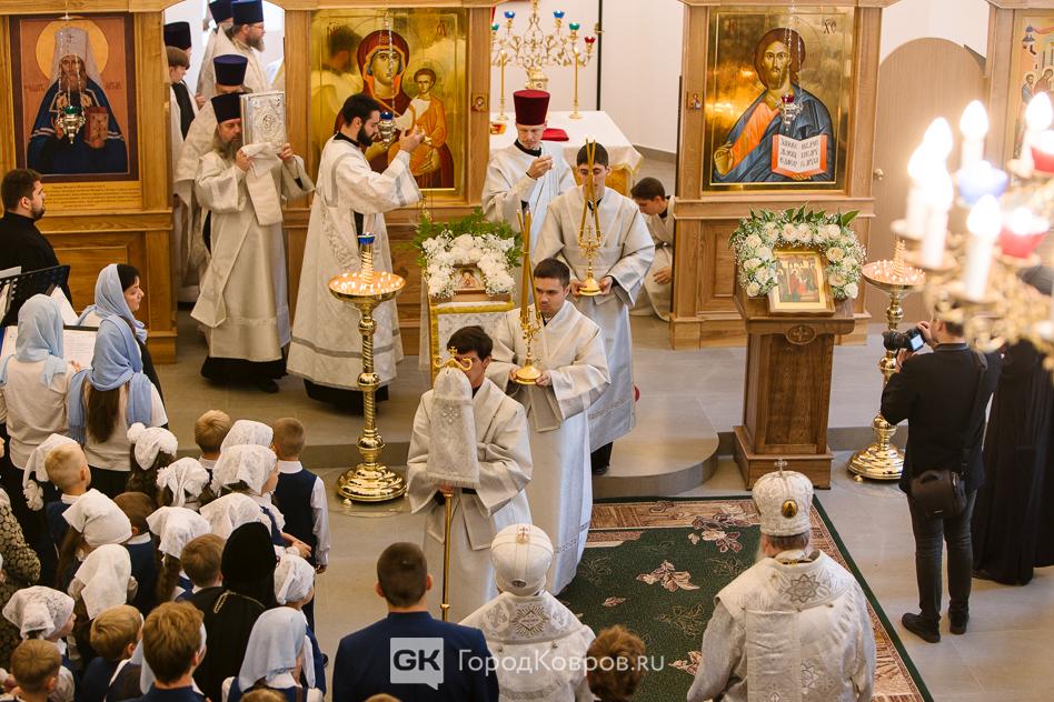 На освящение храма в православную гимназию приехали глава Коврова Елена Фомина, вице-мэр по социальным вопросам Светлана Арлашина, начальник управления образования Сергей Павлюк и спикер горсовета Анатолий Зотов. Все они отметили, что наличие в нашем городе православного образовательного учреждения — это предмет гордости.