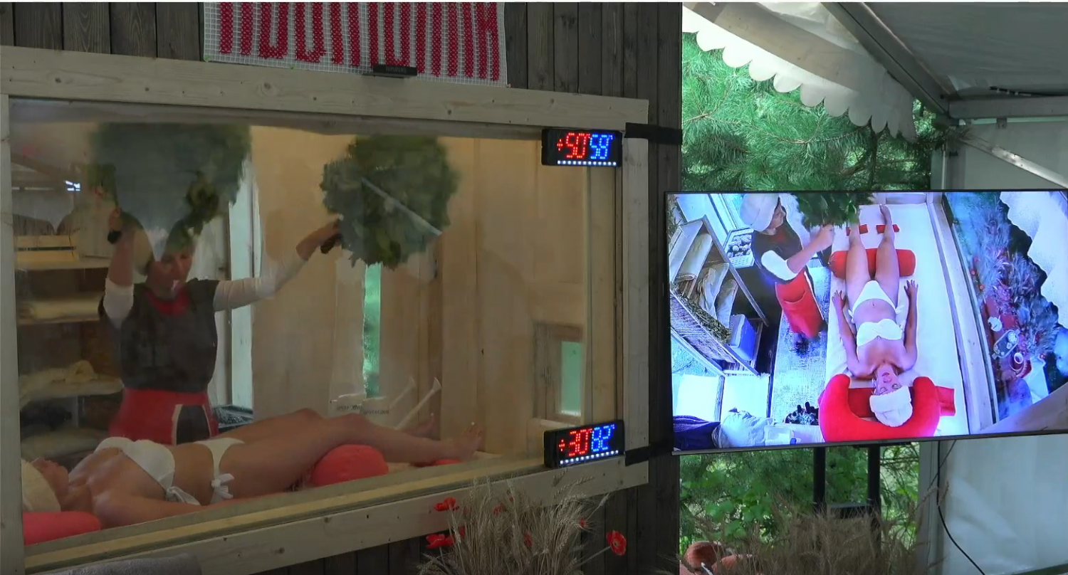 После этапа презентации участники и модели заходят в парную, где начинают собственно парение. Жюри и зрители могли видеть всё происходящее через прозрачное стекло и видео-трансляцию.